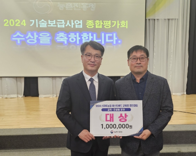 이번 경진대회는 테스트베드 교육장을 운영하는 전국 119개 농업기술센터를 대상으로 교육·컨설팅과 데이터 활용 두 가지 분야를 평가했는데 대전시 농업기술센터는 ‘스마트농업을 위한 첫걸음’이라는 주제로 참가한 교육·컨설팅 분야에서 좋은 점수를 받았다.