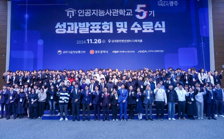 광주광역시와 인공지능산업융합사업단은 26일 오후 김대중컨벤션센터에서 ‘제5기 광주인공지능사관학교 성과 발표회 및 수료식’을 개최했다.
