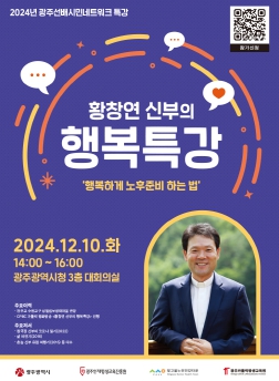 ‘행복하게 노후 준비 하는 법’을 주제로 마련된 이번 강의는 고령평생학습체계 정립과 선배시민 문화 확산을 위한 '광주선배시민네트워크 특강' 일환으로 진행된다.