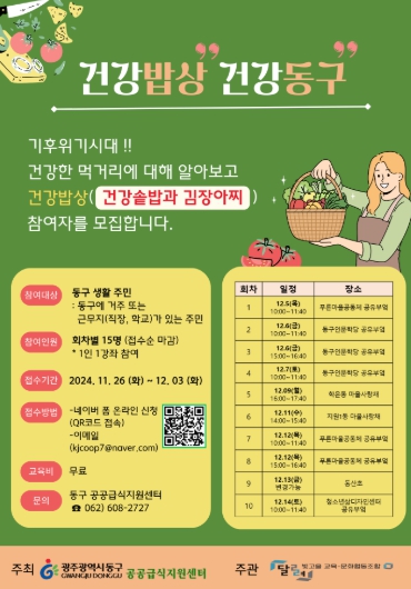 관심있는 시민들은 동구청 누리집 새소식(‘건강밥상 건강동구’)에서 네이버폼 또는 이메일을 통해 신청하면 된다.