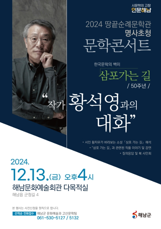 | 해남 땅끝순례문학관, 황석영 소설가 초청 문학콘서트 |