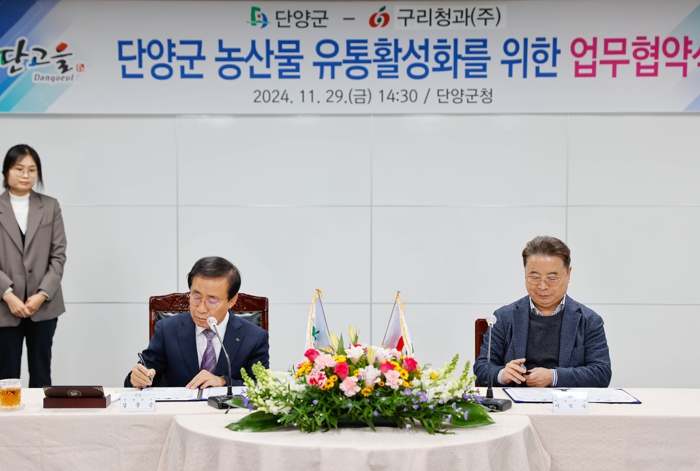 이날 단양군청 2층 소회의실에서 열린 협약식에는 김문근 단양군수와 이석우 ㈜구리청과 대표이사가 참석했다.