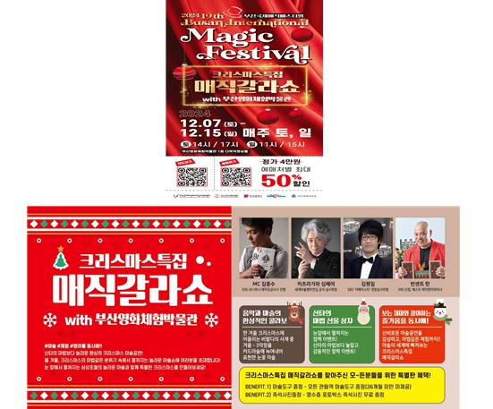부산시는 (사)부산국제매직페스티벌 조직위원회와 오는 12월 7일부터 15일까지 2주간 매주 토·일요일 부산영화체험박물관 1층 다목적영상홀에서 '크리스마스 특집 매직 갈라쇼'를 개최한다고 밝혔다.