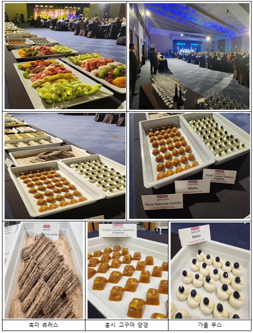 이번 행사에서 선보인 디저트는 부산의 지역 특산물을 활용해 개발된 ▲'흑미 츄러스' ▲'홍시 고구마 양갱' ▲'가을 무스'로, 행사 공식 케이터링 업체인 롯데호텔 부산과 협의해 만찬에 적합한 레시피로 선정했다.