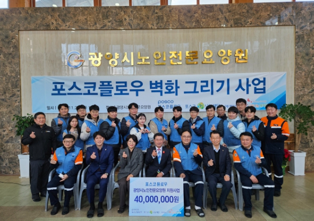 정인화 광양시장은 “나눔과 배려, 그리고 사랑으로 벽화 기증 행사를 준비해 주신 반돈호 포스코플로우 대표님과 임직원분들께 감사드린다”며 “오늘 그려진 벽화가 요양원에 입소하신 어르신들에게 일상 속 활력 및 작은 선물이 되기를 바라며 포스코플로우가 앞으로 더욱 번영하기를 희망한다”고 말했다.