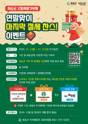 | 화순군 고향사랑기부제 연말맞이 마지막 절세찬스! 이벤트 홍보 이미지 |