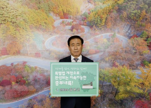 조병옥 음성군수의 지목을 받은 김문근 군수는 “중부내륙 발전을 위해 특별법 개정은 반드시 이뤄져야 한다”며 “특별법 개정으로 지역의 균형 발전과 주민들의 삶의 질 향상이 이뤄질 수 있길 기대한다”고 말했다.