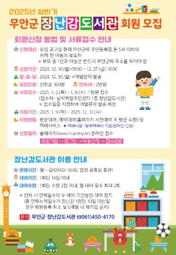 | 무안군, 2025년 장난감도서관 신규회원 300명 모집 |