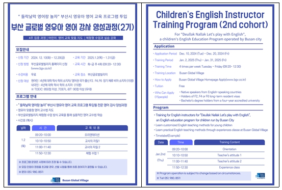 | 부산 글로벌 영유아 영어강사 양성과정(2차) 안내문(국문, 영문) |