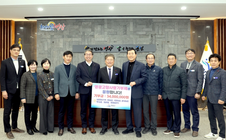 이에 영광군수 장세일은 “항상 영광군 농축산업 발전을 위해 노력하고 있는 범농협 임직원분들께 감사한 마음을 가지고 있다”며 “소중하고 따뜻한 기부에 동참해 주심에 감사하고 모금된 기부금은 공정하고 내실있게 사용할 것임을 약속드리겠다.”고 말했다.