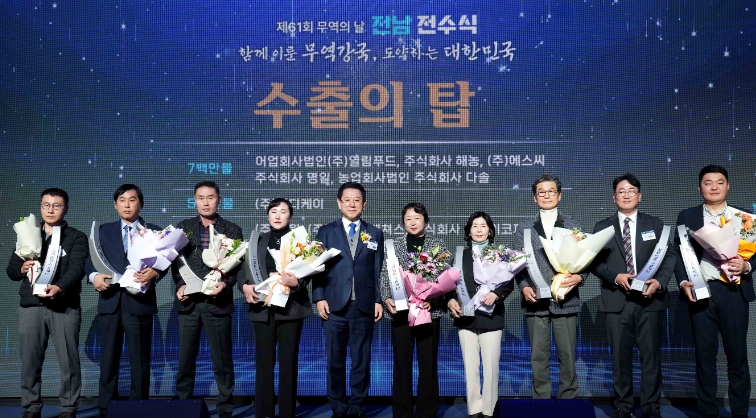 김영록 지사는 “올해 저성장, 고환율, 보호무역주의 확산으로 어려움을 겪으면서도 기업인들께서 신시장 개척과 기술혁신으로 수출 경쟁력 제고에 힘써줘 감사하다”며 “앞으로도 수출 기업이 세계 무대에서 빛나도록 전남도가 든든한 지원군이 되겠다”고 강조했다.