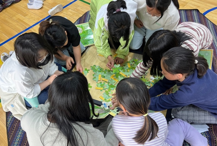 | ACC 오월이야기 퍼즐 프로그램에 참가하고 있는 신안군 어린이들 |