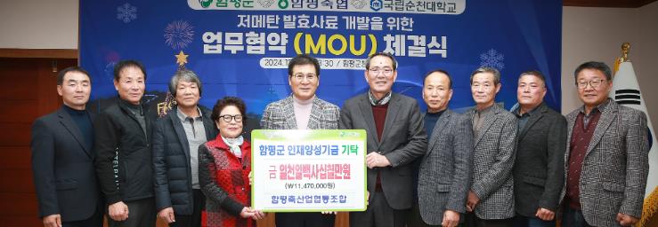 이상익 함평군수는 “함평축협에서 이렇게 매년 지역 사랑을 실천해 주심에 깊이 감사드린다”며 “이번에 기탁해 주신 인재양성기금은 함평군 지역 학생들이 꿈을 향해 정진할 수 있는 환경을 조성하는 데 소중히 사용하겠다”고 말했다.