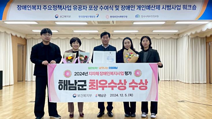 | 해남군 장애인 복지 두각“상복 터졌다” |