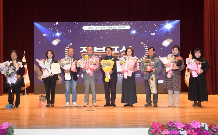 우수 자원봉사자 표창은 대통령상에 이정남 한마음회 회장, 국무총리상에 박미숙 동구자원봉사센터 충장동캠프 캠프장, 김용덕 (사)맑고 향기롭게 광주지부, 행정안전부장관상에 최소순 풀잎봉사단 회원, 박태우 두바퀴사랑회 회장 등 7명, 광주광역시장상에 양삼용 · 이점숙 봉사자 등 18명이 수상했다.