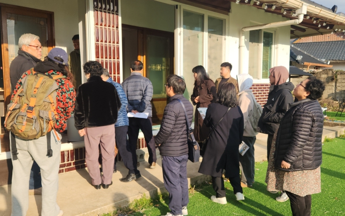 | 강진군 병영면 주민들이 도시재생지원센터의 사업 브리핑을 듣고 현장 동선을 살펴보고 있다. |