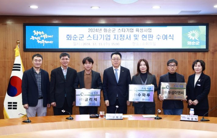 구복규 화순군수는 “화순군 스타기업에 선정된 업체에 축하의 말씀을 전한다. 화순군을 대표할 스타기업이 글로벌 강소기업으로 발전할 수 있도록 지원을 아끼지 않겠다.”며 “관내 농공단지 생산 제품이 우선구매 될 수 있도록 최대한 지원하겠다.”고 밝혔다.