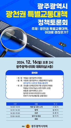 이번 토론회는 광주시의 ‘광천권 특별교통대책’ 세부 내용을 점검하고, 실효성과 예산 확보 방안 등에 대한 심도 있는 논의를 위해 마련됐다.