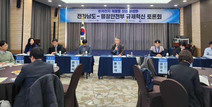 전남도와 행정안전부가 공동 개최하고 기업, 한국배터리산업협회, 환경부, 시군 등 약 100여 명이 참석한 이날 토론회는 지역 배터리 재활용 산업 활성화를 위한 규제 개선 방안을 깊이있게 논의했다.