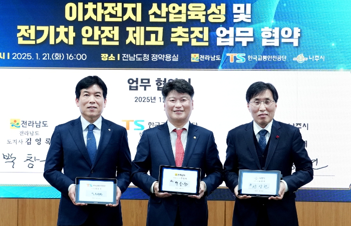 이를 위해 전남도, 나주시는 국내 유일의 교통안전 종합 전문기관인 교통안전공단과 전기차 재제조 배터리 검사기술개발과 안전 기준, 인증체계 마련을 위해 긴밀히 협력해 나가기로 했다.