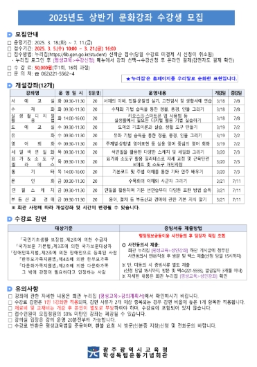 | 2025년도 상반기 평생교육프로그램(성인 문화강좌) |