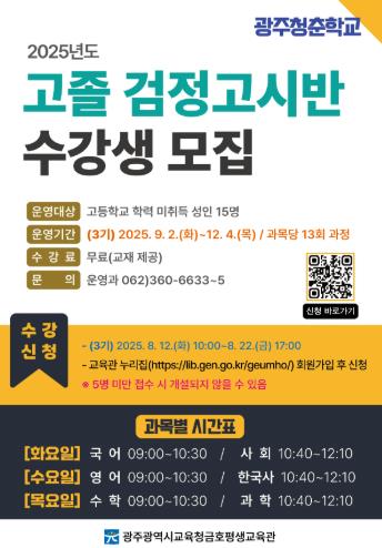 | 금호평생교육관, ‘고졸 검정고시반’ 수강생 모집 |