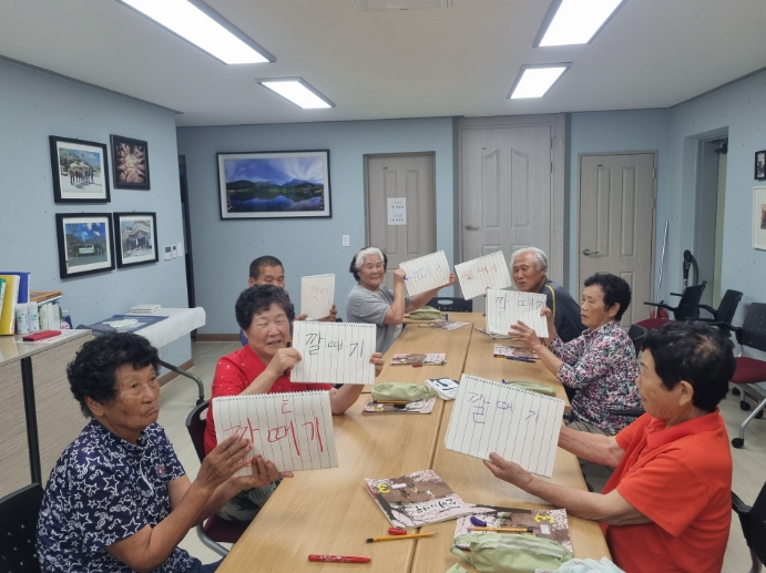 | 평생학습 박람회의 프로그램인 문해골든벨의 예선전을 하고 있는 어르신들 |