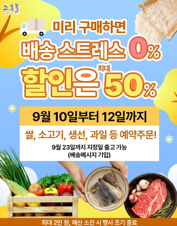 이번 기획전은 쌀, 소고기, 생선, 과일 등 명절 인기 품목을 미리 예약 주문하면, 희망 출고일을 9월 23일까지 지정할 수 있어 ‘받고 싶은 날 받는’ 명절 준비를 지원한다.