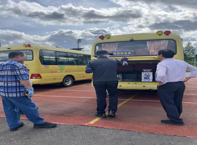 | 교육지원청, 도로교통공단, 안전점검 관계자들이 차량을 점검하고 있다. |
