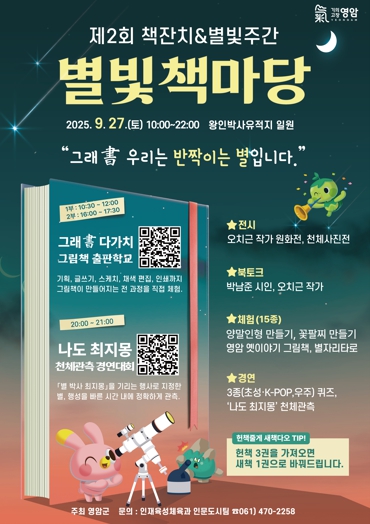 영암군이 ‘2025 별빛책마당’을 열고, 오전 10시부터 늦은 밤까지 남녀노소가 함께 즐길 수 있는 다채로운 프로그램을 준비하기 때문.