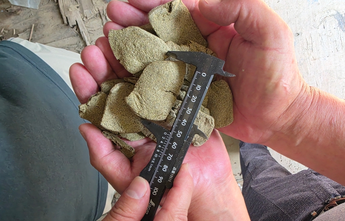 대체먹이는 해조류 부산물 등을 이용한 절편모양의 배합사료다.