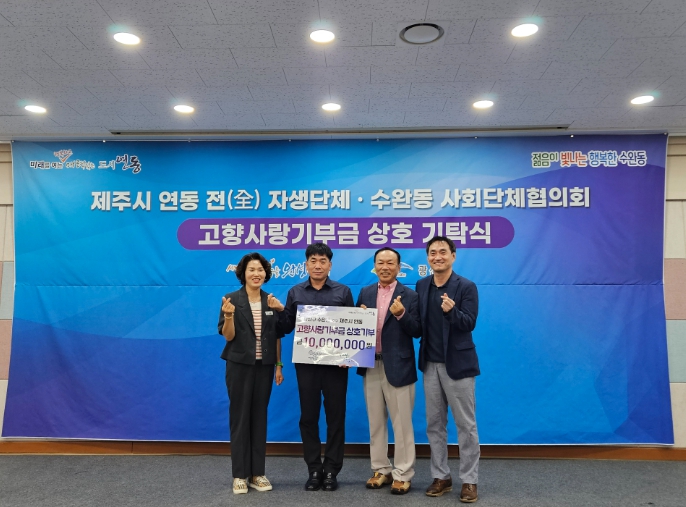수완동은 제주시 연동과 함께 지난 19일 동행정복지센터 3층 대회의실에서 고향사랑기부금 상호기탁식을 개최했다.