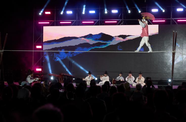 첫날 5일시장에서 펼쳐진 거리공연은 풍물과 마술로 흥을 돋우며 축제의 서막을 열었고, 둘째 날 개막제는 줄광대 공연, 명창들의 판소리, 학춤과 창작 연주가 어우러진 주제공연으로 관객들을 사로잡았다.