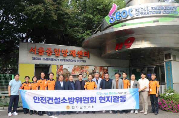 | 전라남도의회 안전건설소방위원회가 9월 22일 서울종합방재센터를 방문해 AI 콜봇 운영 사례를 청취한 후 기념촬영을 하고 있다. |
