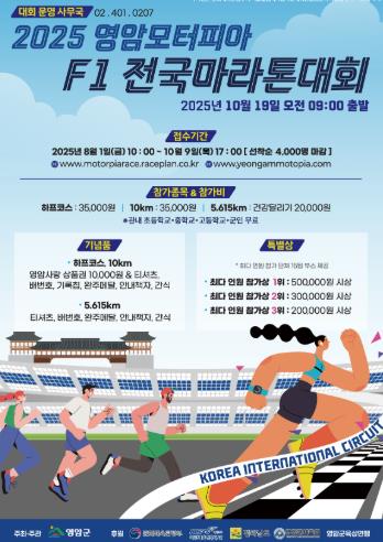 한재진 영암군 기업지원과장은 “국제자동차경주장을 달리는 이색 마라톤 대회에 많은 분들의 관심과 참여 바란다. 대회 참여와 함께 아름다운 영암의 가을과 맛있는 음식도 즐기길 바란다”고 전했다.