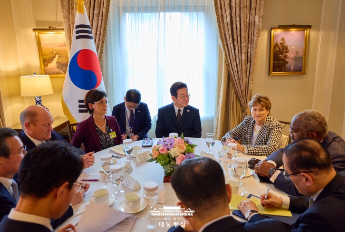 이 대통령은 지난달 트럼프 대통령과의 성공적인 정상회담을 통해 한미동맹이 안보, 경제, 첨단기술을 포함한 제반 분야에서 '미래형 포괄적 전략동맹'으로 진화해 나갈 기반이 마련됐다고 평가하고, 양국이 미래지향적 협력을 더욱 발전시켜 나갈 수 있도록 미 의회 차원의 관심과 지원을 당부했다.