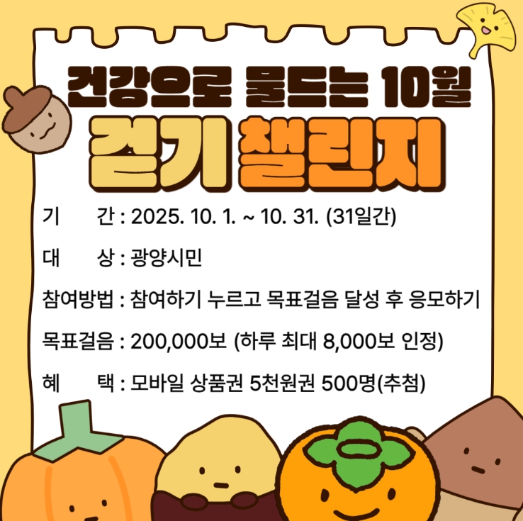 한편, 광양시는 생활 속 움직임을 활성화하고 시민 건강 증진을 도모하기 위해 모바일 걷기 앱 워크온을 활용한 걷기 챌린지를 매월 운영하고 있다.