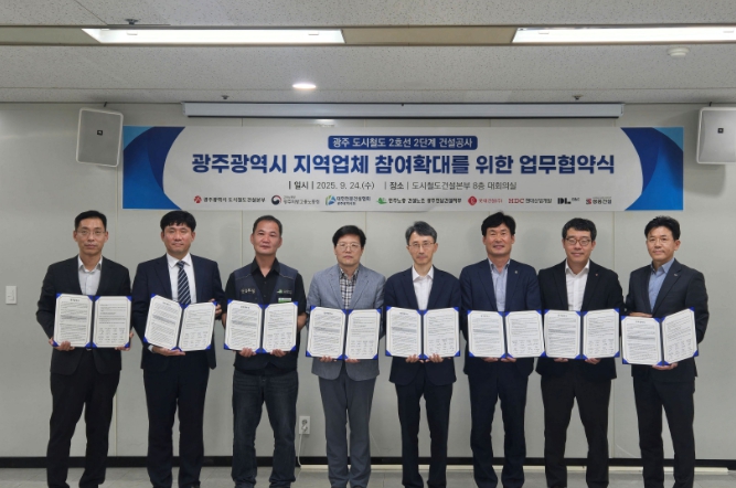 이번 협약은 대한전문건설협회 광주지회, 민주노총 건설노조 광주전남본부와 2단계 건설공사 시공사인 롯데건설, HDC현대산업개발(2개 공구), 디엘이앤씨(2개 공구), 쌍용건설, 행정에서는 광주지방고용노동청, 광주시 도시철도건설본부 등 8개 기업·기관·단체가 참여해 지역경제 활성화를 위해 손을 맞잡았다.
