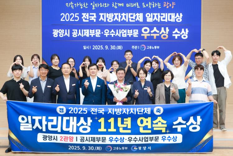 | 광양시, ‘전국 지방자치단체 일자리대상’ 공시제‧우수사업 부문 우수상 |