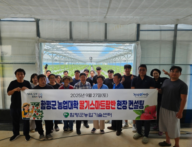 함평군은 1일 “함평군 농업대학 딸기스마트팜반 교육생 30여 명이 지난달 27일 관내 딸기 재배 농가 4곳을 방문해 현장 컨설팅 교육을 실시했다”고 밝혔다.
