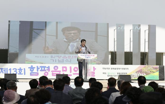 | 1일 제13회 함평읍민의 날, 이상익 함평군수 기념사 모습 |