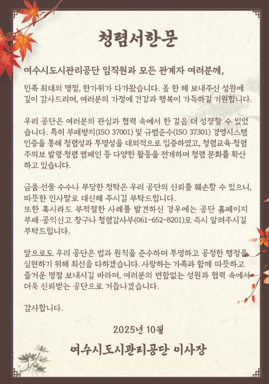 | 추석 앞두고 청렴 서한문 발송 |