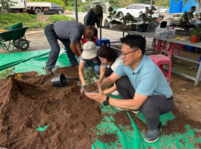 | 함평군 국화동호회, 국화 분재 준비 사진 |