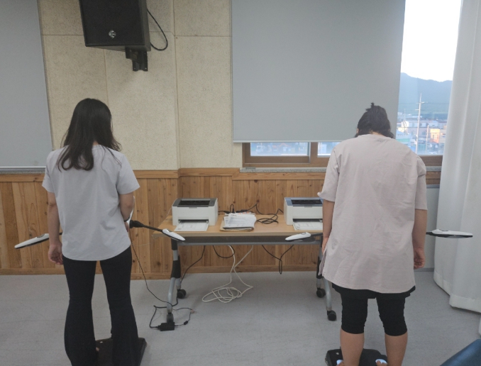 | 직장인들이 신체활동에 임하고 있다. 2. 참여자들이 사업전‧후 체성분검사를 시행하고 있다. |