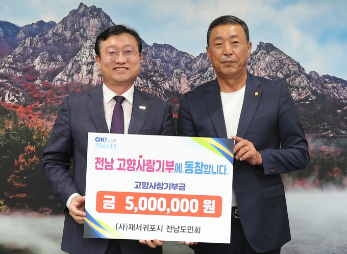 장은술 회장은 “비록 몸은 제주에 있으나, 마음은 늘 고향인 전남에 있다”며 “회원들이 십시일반으로 모은 기부금이 고향 발전에 조금이나마 보탬이 됐으면 좋겠다”며 “앞으로도 회원들과 함께 고향 발전을 위해 노력하겠다”고 말했다.