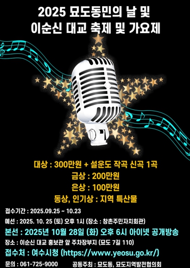 | ‘2025 묘도동민의 날 및 이순신대교 축제 및 가요제’ 포스터 |