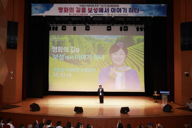 | 보성군, 서영교 국회의원 초청‘2025년 전남평화포럼 ’성료_지난 10일 보성군문화예술회관에서 개최된 ‘서영교 국회의원 초청 2025 전남평화포럼’이 성황리에 마무리됐다 |