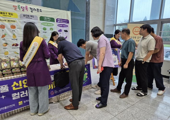 참가자들은 설문판에 스티커를 붙이며 ‘어제 저녁 몇 가지 컬러푸드를 먹었는지’를 직접 확인하는 참여형 활동을 진행했으며, 통밀 샌드위치와 생과일주스를 선착순으로 제공하는 컬러푸드 나눔 행사도 함께 열렸다.