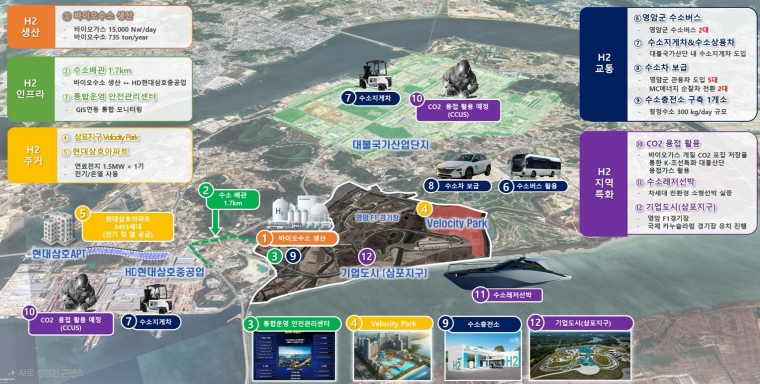 이를 위해 2028년까지 2MW급 청정수소 실증 플랜트를 구축하고, 2030년까지 영암군을 60MW급 에너지 자립형 수소도시로 발전시킬 계획이다.