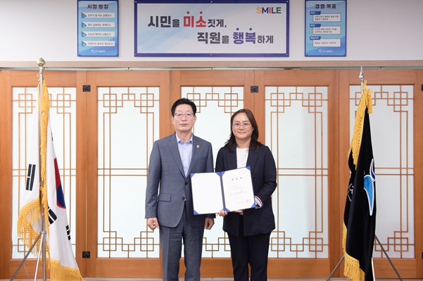 | 인천시설공단(이사장 김재보, 좌측)은 15일 김연주 인하대학교병원 인천권역심뇌혈관질환센터 예방관리센터장(우측)을 공단의 산업보건의로 위촉했다. |